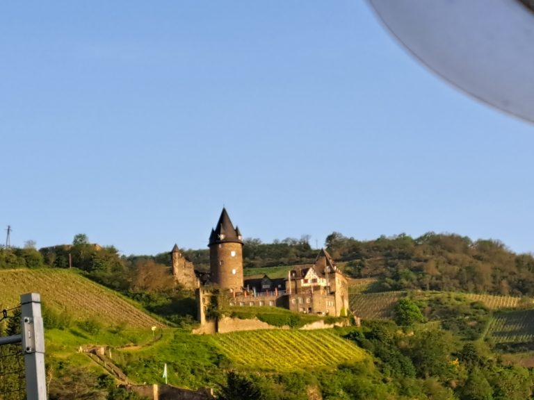 Eigentlich reichen Bilder aus, um diese Frage zu beantworten. Verwinkelte Gassen, mächtige Burgen, verträumte Schiffe. Einfach mal die Seele baumeln lassen im schönen Bacharach am Rhein. Schattige Rheinauen laden zum Verweilen ein, Radwege führen am Strom entlang, Züge und Schiffe versorgen die Menschen mit ihren Bedürfnissen an der vielzitierten Rheinromantik. Uns gefällt es immer wieder am schönen Rhein mit seinen zahlreichen Schiffen und Zügen die vorbeiziehen. Und „Ja“ zum Thema stören Züge und Schiffe nicht meine Ruhe und den Schlaf. Nein sie bereichern unser bewegtes Leben mit vielen neuen Eindrücken. Wir empfinden es nicht als störend, ganz im Gegenteil „Wir schlafen hier sehr gerne und sehr lange.“ Ganz anderes als zu Hause. Das Wetter muss natürlich mitspielen, so wie bei unserem Besuch und Wandertag auf die Burg. Unzählige Stufen geht es nur bergauf, aber jeder Schritt lohnt sich. Der Ausblick über das Rheintal wird immer schöner und interessanter. Vorbei…